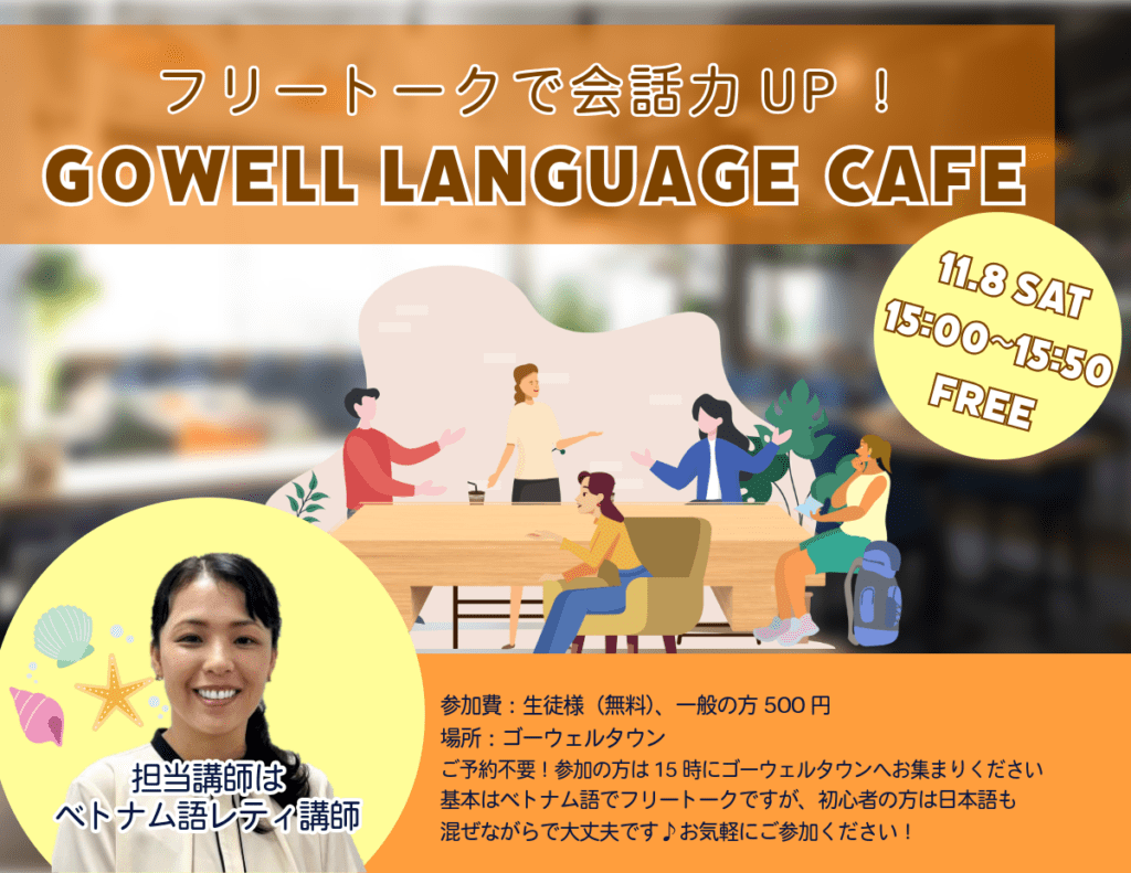 ☆11/8 sat OPEN☆ ゴーウェルランゲージカフェ